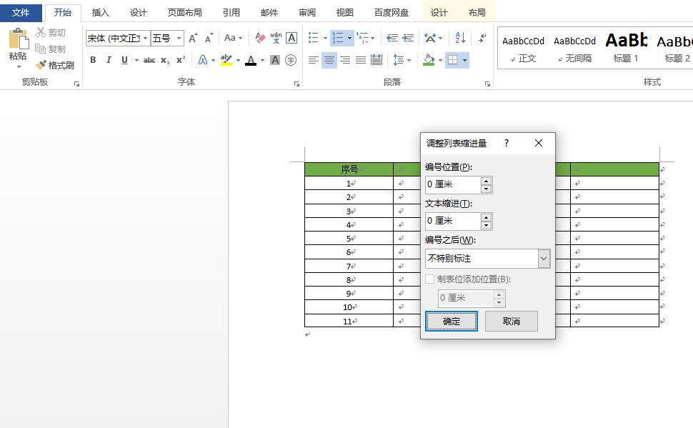 - 如果添加序列号并执行居中命令,数字不会居中。解决方法:点击其中1个序号以选择整个列,然后鼠标右击→调整列表缩进→将文本缩进设置为0→编号之后选“不特别标注”。